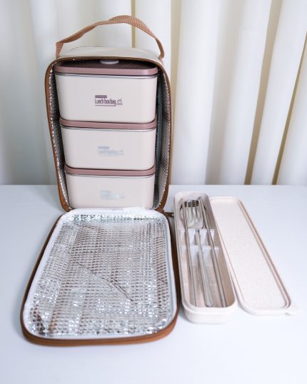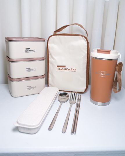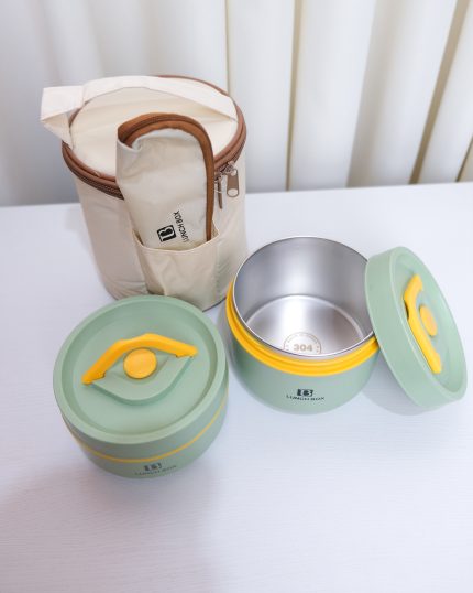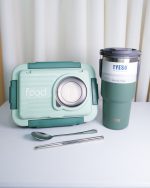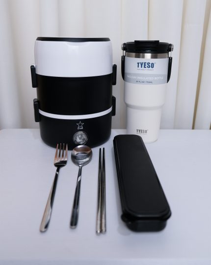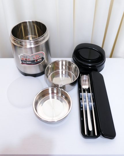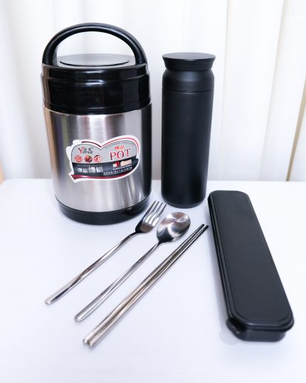 🔹ظرف غذا درب دار داخل استیل به همراه تراول ماگ داخل استیل ار برند تایسو