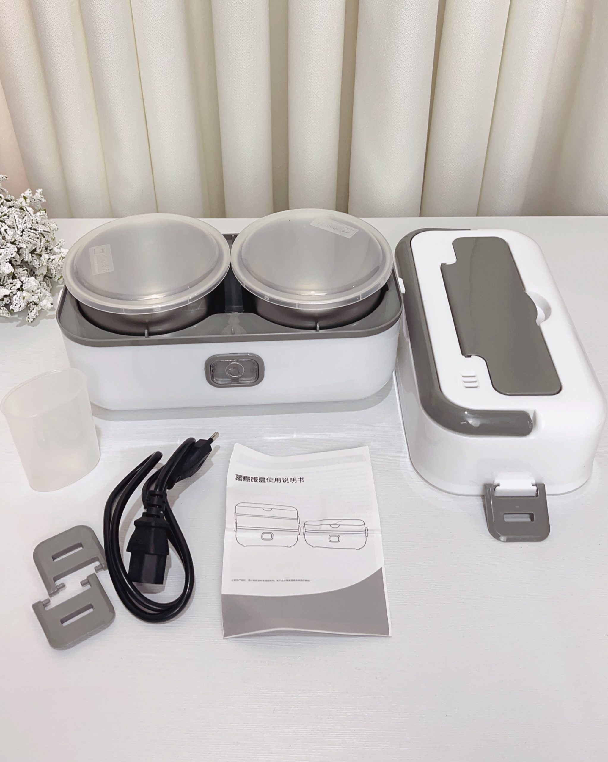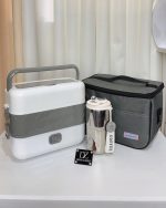 ظرف غذا برقی دو طبقه به همراه کیف عایق حرارتی و تراول ماگ