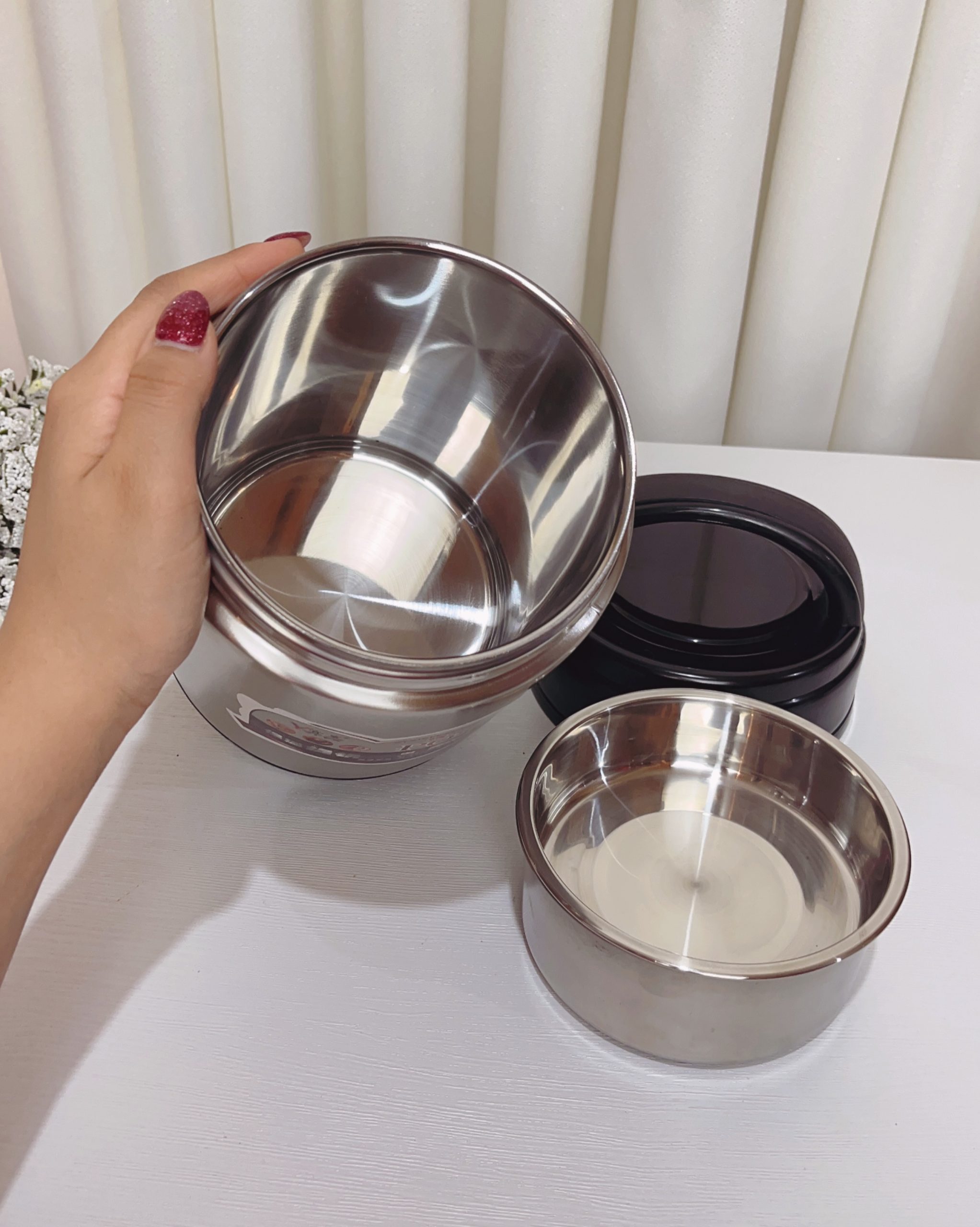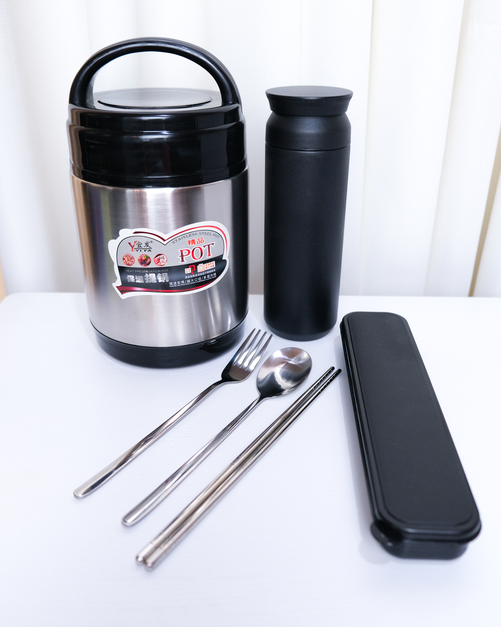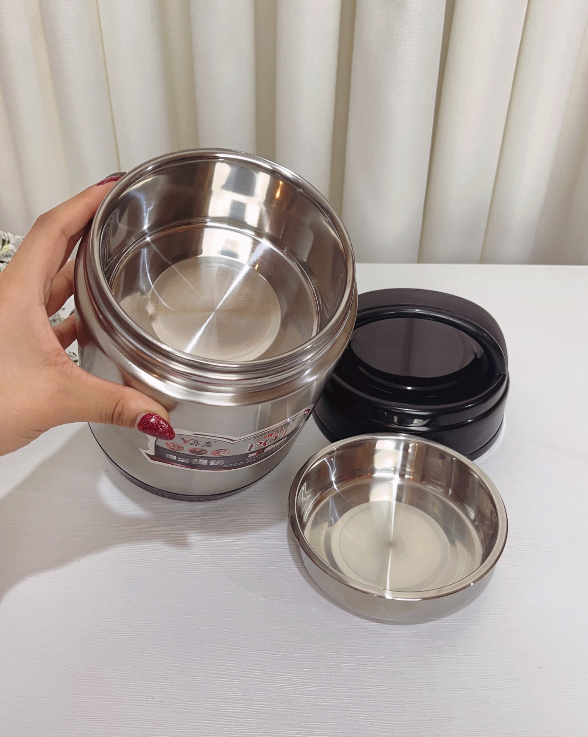 🔹فلاسک غذا دو جداره داخل استیل به همراه تراول ماگ داخل استیل با ست قاشق
